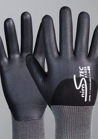 Powłoka niroS TEC jest podwójnie zanurzoną powłoką na bazie pianki nitrylowej i prawdopodobnie najcieńszą powłoką dostępną na rynku. Jest obecnie jedną z najbardziej innowacyjnych i najmocniejszych powłok rękawic ochronnych. Powłoka niroS TEC udowodniła swoją przewagę w wielu testach porównawczych.